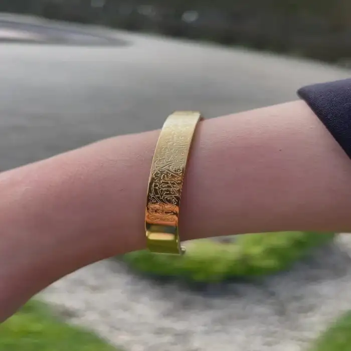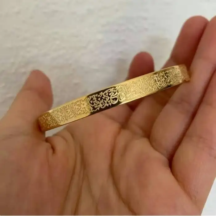 এই সুন্দর অলংকারের সাথে আপনার বিশ্বাসকে আলিঙ্গন করুন যাতে একটি স্টাইলিশ ব্রেসলেটে এম্বেড করা আয়াতুল কুরসির অর্থপূর্ণ শব্দ রয়েছে।আমাদের অফার চিরকাল থাকবে b
